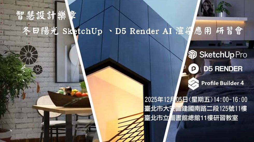 智慧設計樂章 冬日陽光 SketchUp 、D5 Render AI 渲染應用 研習會