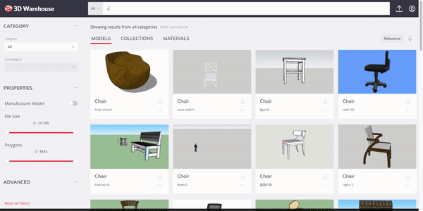 憑藉數百萬個模型和17種語言的支持,3DWarehouse 無疑是這個世界上最好的三維模型倉庫。但是當模型數量龐大之後,找到您正在尋找的內容卻並不總是那麼容易。現在三維模型庫擁有了更加詳細的模型分類,通過多種過濾選項進行搜索優化,並增加了真實產品過濾,以此擁有更好的瀏覽搜索體驗。今年,3D模型庫使您可以花更少的時間在搜索上,並將更多時間用於創造。